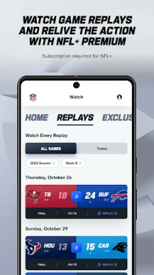 - Relive gameday with game replays including full, condensed, and all-22 coaches films across devices, all ad-free.