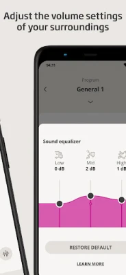 • Use the streaming equalizer for a personalized listening experience. The streaming equalizer is available for all Oticon Bluetooth® hearing aids except Oticon Opn™ and Oticon Siya